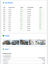 Review property tax records to better understand a property's assessed value and tax obligations. Property Checker reports include assessment values, taxes owed, exemptions, land and improvement values, and up to 20 years of tax history. This information helps you track how property taxes have changed over time and understand past tax increases.
